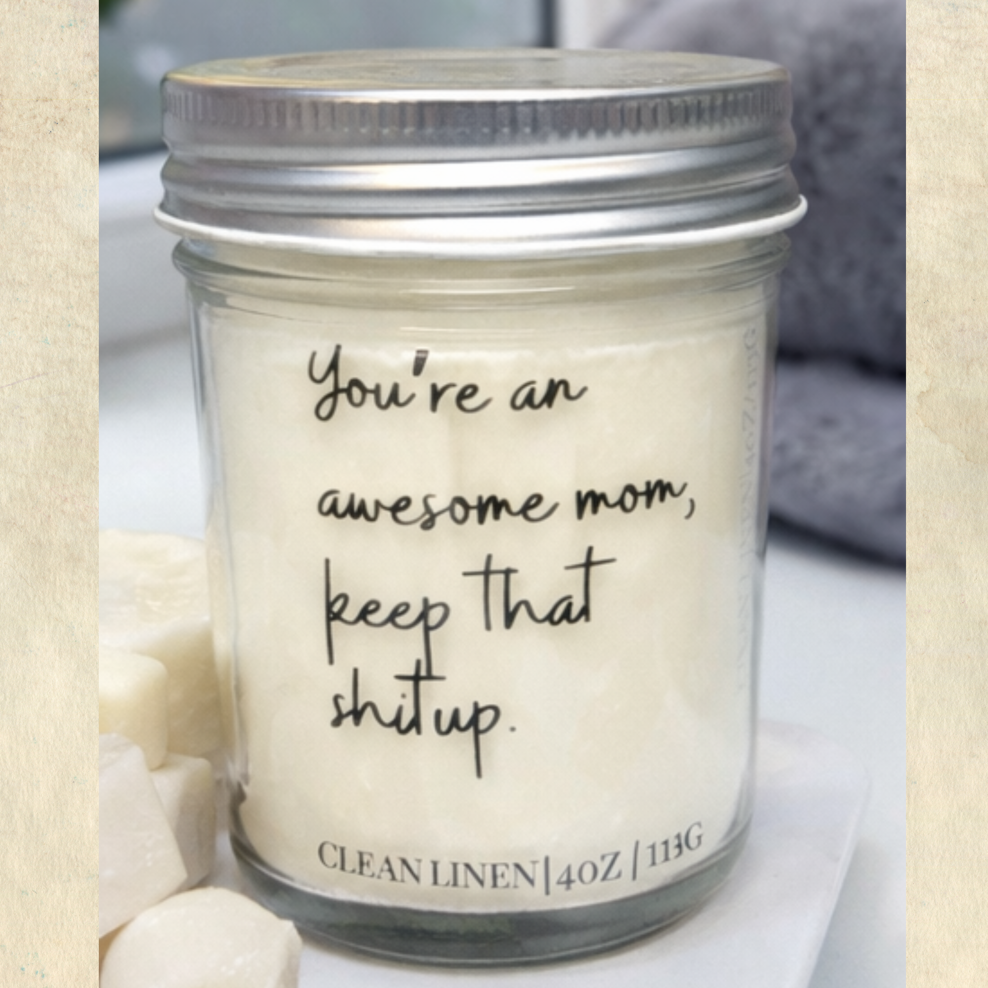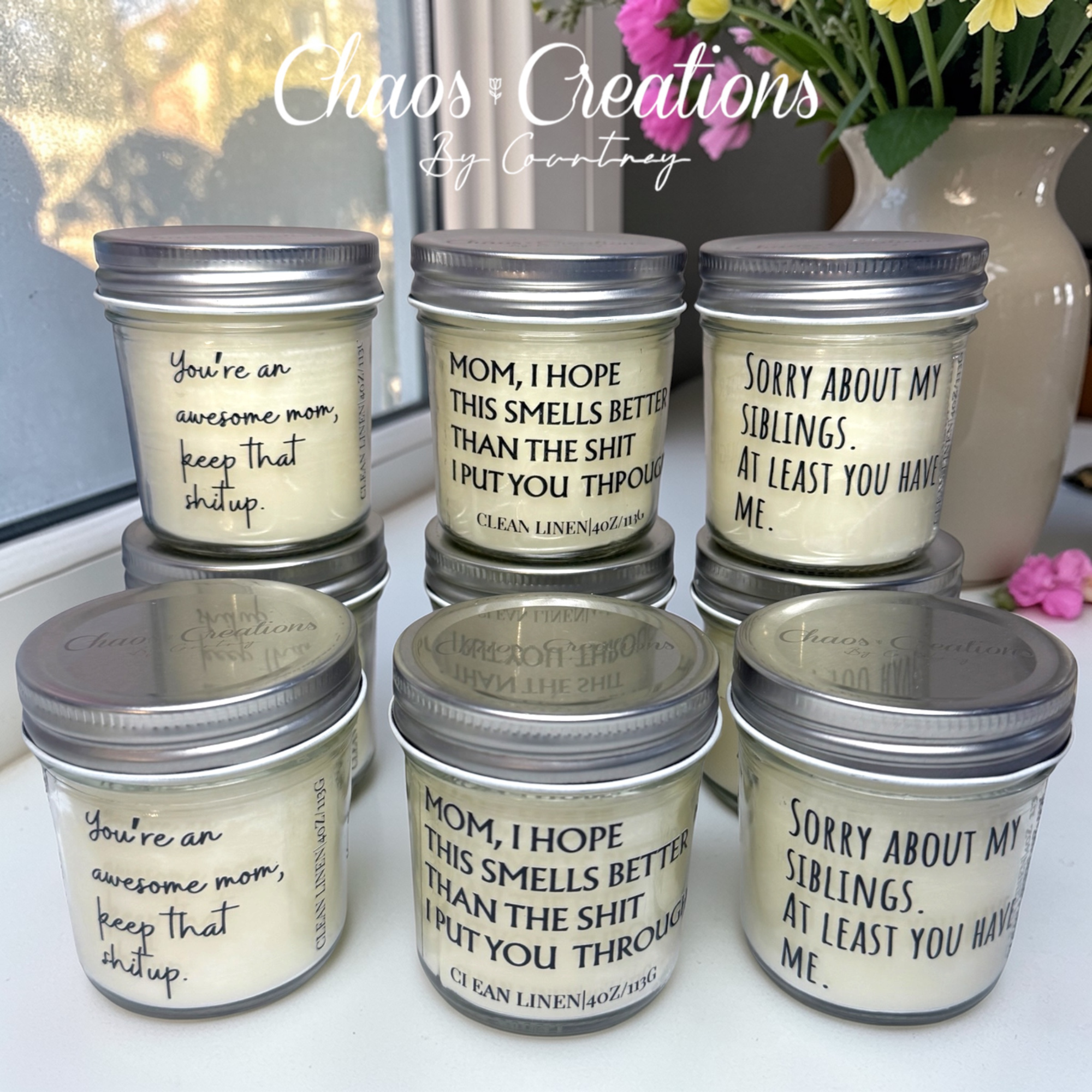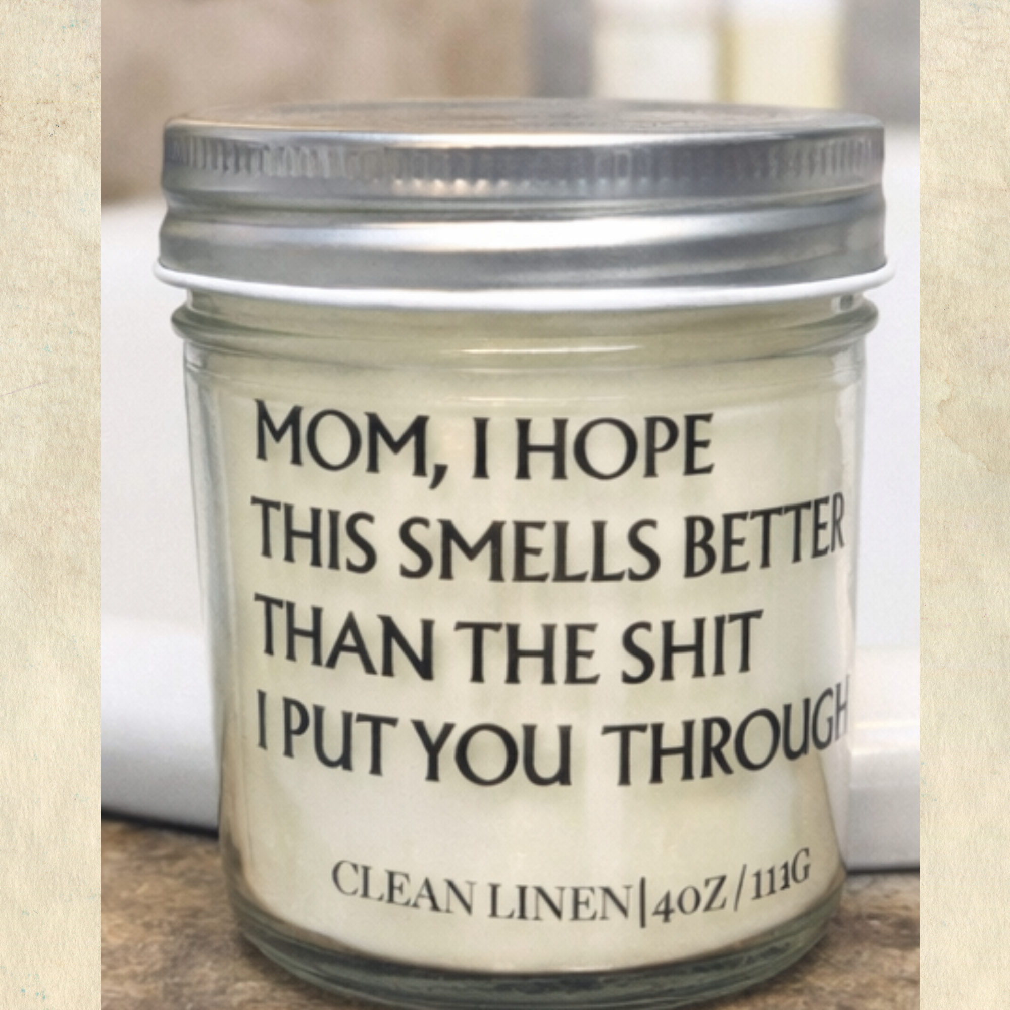 Our sarcastic Mother’s Day candles are hand-poured using a premium soy blend wax and finished with a clean linen scent that brings all the fresh, cozy vibes. Whether you’re gifting your favorite mama or treating yourself (because same), these candles are the perfect mix of humor and relaxation.